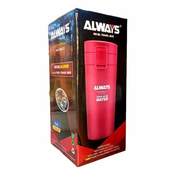 This high quality stainless steel travel mug is very popular for its big size and its inbuilt vacuum that keeps hot things hot and cold things cold for a good period of time. it has a spacious handle for easy carriage as you take tea and it is very portable while traveling or in office.